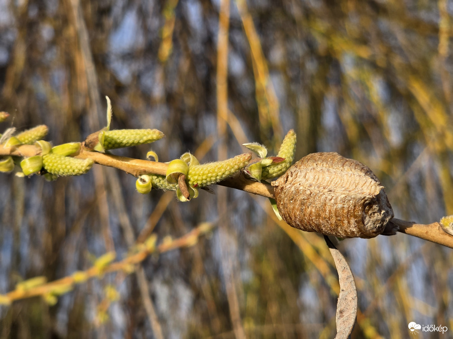 Az ág végén valószínűleg imádkozó sáska petecsomója van.